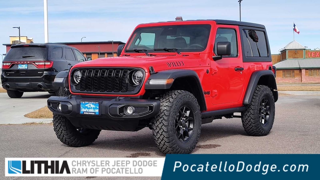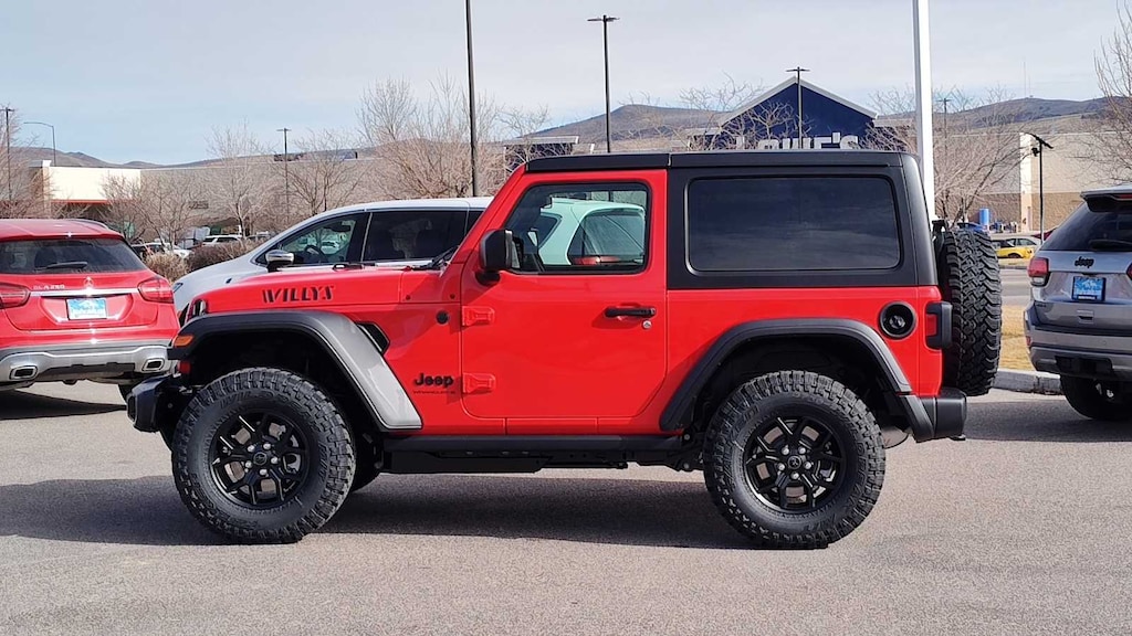 QUICK ORDER PACKAGE 22W WILLYS 2.0L I4 DOHC DI Turbo Engine w/ESS, 8-Speed Automatic 850RE Transmission, 7 & 4 Pin Wiring Harness, Conventional Differential Front Axle, Power Dome Dual Vented Hood, 4-Wheel Drive Swing Gate Decal, Black Grille w/Gloss Black Rings, Injection Molded Black Rear Bumper, Dana M210 Wide HD Tube Front Axle, Daytime Running Lamps LED Accents, Front LED Fog Lamps, LED Premium Reflector Headlamps, E-Locker Rear Axle, Corning Gorilla Glass, Security Alarm, Class II Receiver Hitch, Mold In Color Bumper w/Gloss Black, Advanced Brake Assist, Automatic Headlamps, Off-Road Plus Mode, Willys Hood Decal, Full Speed Forward Collision Warning Plus, Rock Protection Sill Rails, Power Heated Mirrors, Enhanced Adaptive Cruise Control, Auxiliary Switches, Dana M220 Wide Rear Axle, 8-SPEED AUTOMATIC 850RE TRANSMISSION Adaptive Cruise Control w/Stop, Anti-Lock 4-Wheel Disc Brakes, Selec-Speed Control, BLACK 3-PIECE HARD TOP Freedom Panel Storage Bag, Rear Window Defroster, Rear Window Wiper/Washer, CONVENIENCE GROUP Emergency/Assistance Call, 2-Door Passive Entry, Front Door Locks, Cluster 7.0 TFT Color Display, Universal Garage Door Opener, Heated Front Seats, Air Conditioning w/Auto Temp Control, Heated Steering Wheel, Air Filtering, 2.0L I4 DOHC DI TURBO ENGINE W/ESS. Jeep Willys with Firecracker Red Clearcoat exterior and Black interior features a 4 Cylinder Engine with 270 HP at 5250 RPM*.