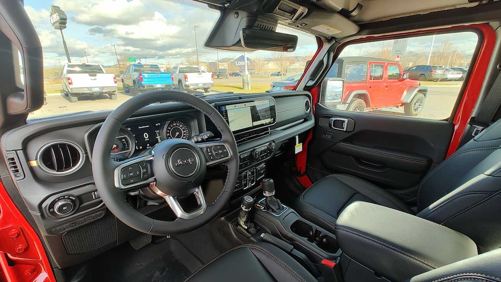 SAHARA POPULAR EQUIPMENT GROUP Alpine Premium Audio System, Integrated Off-Road Camera, Blind Spot & Cross Path Detection, HD Radio, Rear View Auto Dim Mirror, Side Steps, Integrated Voice Command w/Bluetooth®, Uconnect 5 Nav w/12.3 Display, GPS Navigation, Auto High Beam Headlamp Control, Universal Garage Door Opener, Connected Travel & Traffic Services, ParkSense Rear Park Assist System, BODY COLOR 3-PIECE HARD TOP Freedom Panel Storage Bag, Rear Window Defroster, Rear Window Wiper/Washer, 3.6L V6 24V VVT UPG I ENGINE W/ESS Engine Oil Cooler, 8-SPEED AUTOMATIC 850RE TRANSMISSION (STD), BLACK, MCKINLEY TRIMMED SEATS Hard Seat Back, Leather Wrapped Shift Knob, Power Adjust 8-Way Driver Seat, Power 4-Way Passenger Lumbar Adjust, Power Adjust 8-Way Front Passenger Seat, Leather Wrapped Park Brake Handle, Power 4-Way Driver Lumbar Adjust. Jeep Sahara with Firecracker Red Clearcoat exterior and Black interior features a V6 Cylinder Engine with 285 HP at 6400 RPM*.