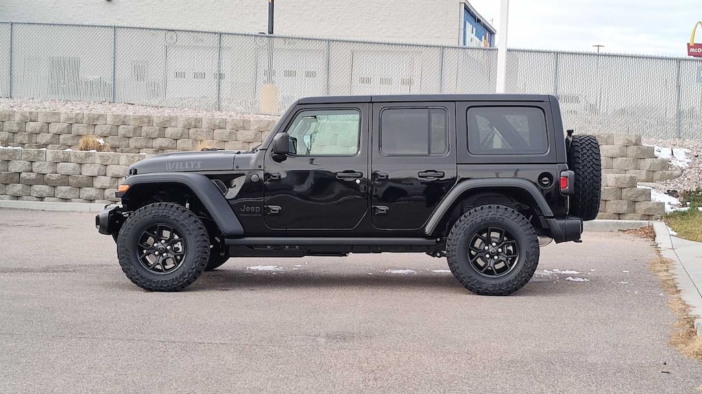 QUICK ORDER PACKAGE 24W WILLYS 3.6L V6 24V VVT UPG I Engine w/ESS, 8-Speed Automatic 850RE Transmission, 7 & 4 Pin Wiring Harness, Conventional Differential Front Axle, 4-Wheel Drive Swing Gate Decal, Black Grille, Injection Molded Black Rear Bumper, Dana M210 Wide HD Tube Front Axle, Daytime Running Lamps LED Accents, Front LED Fog Lamps, LED Premium Reflector Headlamps, E-Locker Rear Axle, Corning Gorilla Glass, Security Alarm, Class II Receiver Hitch, Mold In Color Bumper w/Gloss Black, Advanced Brake Assist, Automatic Headlamps, Off-Road Plus Mode, Willys Hood Decal, Full Speed Forward Collision Warning Plus, Rock Protection Sill Rails, Power Heated Mirrors, Enhanced Adaptive Cruise Control, Auxiliary Switches, Dana M220 Wide Rear Axle, Molded in Color Rubicon Highline Flare, Premium, 8-SPEED AUTOMATIC 850RE TRANSMISSION Adaptive Cruise Control w/Stop, Anti-Lock 4-Wheel Disc Brakes, Integrated Radar Camera Module (IRCM), Dana M200 Rear Axle, Selec-Speed Control, BLACK MOPAR PERFORATED LEATHER, BLACK 3-PIECE HARD TOP Freedom Panel Storage Bag, Rear Window Defroster, Rear Window Wiper/Washer, CONVENIENCE GROUP Emergency/Assistance Call, 2-Door Passive Entry, Front Door Locks, Cluster 7.0 TFT Color Display, Universal Garage Door Opener, Heated Front Seats, Air Conditioning w/Auto Temp Control, Heated Steering Wheel, Air Filtering, ALPINE PREMIUM AUDIO SYSTEM, 3.6L V6 24V VVT UPG I ENGINE W/ESS Engine Oil Cooler (STD). Jeep Willys with Black Clearcoat exterior and Black interior features a V6 Cylinder Engine with 285 HP at 6400 RPM*.