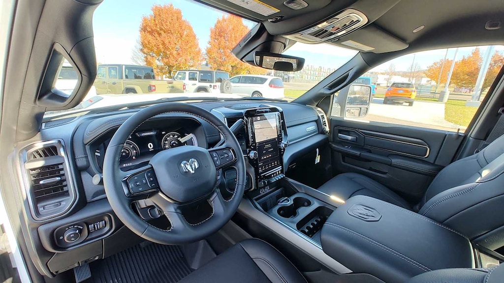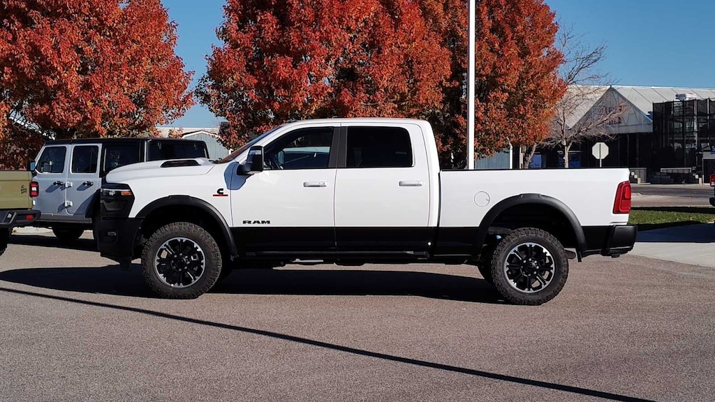 ENGINE: 6.7L I6 CUMMINS HO TURBO DIESEL Selective Catalytic Reduction (Urea), Dual 730 Amp Maintenance Free Batteries, Cummins Turbo Diesel Badge, Heavy Duty Engine Cooling, Diesel Exhaust Brake, Supplemental Heater, 3.42 Axle Ratio, Front Bumper Sight Shields, Fuel Tank Brush Guard, Capless Fuel Fill w/o Discriminator, GVWR: 11,040 lbs, REBEL LEVEL 1 EQUIPMENT GROUP Rain Sensitive Windshield Wipers, Power Adjustable Pedals w/Memory, Body Color Door Handles, Overhead LED Lamps, Auto Dim Exterior Mirror, MOPAR Rock Rails w/Step Pad, Premium Overhead Console, 9 Alpine Speakers w/Subwoofer, Power Heated Fold Telescopic Mirrors w/Memory, Sport Performance Hood, Front Door Locks 2-Door Passive Entry, LED Interior Lighting, Auto High Beam Headlamp Control, LED Dome Lamp w/On/Off Switch, Universal Garage Door Opener, Exterior Mirrors w/Memory, MOPAR Front & Rear Rubber Floor Mats, Auto Dim Exterior Passenger Mirror, Sun Visors w/Illuminated Vanity Mirrors, Auto Adjust In Reverse Exterior Mirrors, BED UTILITY GROUP MOPAR Spray In Bedliner, LED Bed Lighting, MOPAR Deployable Bed Step, TRANSMISSION: 8-SPEED TORQUEFLITE HD AUTOMATIC. Ram Rebel with Bright White Clearcoat exterior and Black interior features a Straight 6 Cylinder Engine with 430 HP at 2800 RPM*. Approx. Original Base Sticker Price: $87,500*.