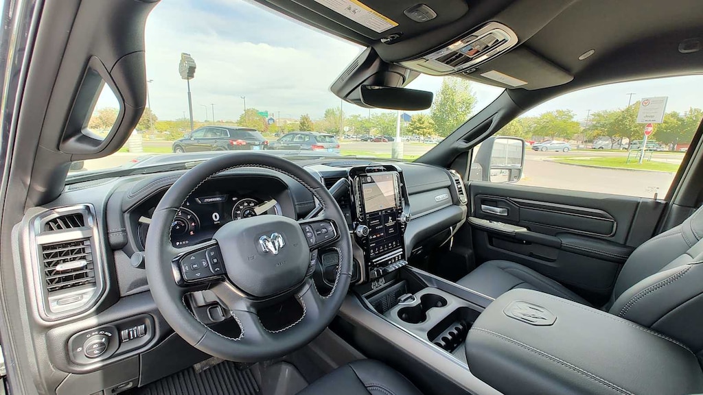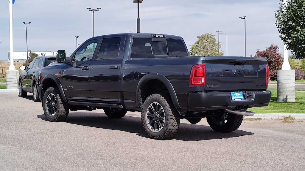ENGINE: 6.7L I6 CUMMINS HO TURBO DIESEL Selective Catalytic Reduction (Urea), Dual 730 Amp Maintenance Free Batteries, Cummins Turbo Diesel Badge, Heavy Duty Engine Cooling, Diesel Exhaust Brake, Supplemental Heater, 3.42 Axle Ratio, Front Bumper Sight Shields, Fuel Tank Brush Guard, Capless Fuel Fill w/o Discriminator, GVWR: 11,040 lbs, REBEL LEVEL 1 EQUIPMENT GROUP Rain Sensitive Windshield Wipers, Power Adjustable Pedals w/Memory, Body Color Door Handles, Overhead LED Lamps, Auto Dim Exterior Mirror, MOPAR Rock Rails w/Step Pad, Premium Overhead Console, 9 Alpine Speakers w/Subwoofer, Power Heated Fold Telescopic Mirrors w/Memory, Sport Performance Hood, Front Door Locks 2-Door Passive Entry, LED Interior Lighting, Auto High Beam Headlamp Control, LED Dome Lamp w/On/Off Switch, Universal Garage Door Opener, Exterior Mirrors w/Memory, MOPAR Front & Rear Rubber Floor Mats, Auto Dim Exterior Passenger Mirror, Sun Visors w/Illuminated Vanity Mirrors, Auto Adjust In Reverse Exterior Mirrors, BED UTILITY GROUP MOPAR Spray In Bedliner, LED Bed Lighting, MOPAR Deployable Bed Step, TRANSMISSION: 8-SPEED TORQUEFLITE HD AUTOMATIC. Ram Rebel with Forged Blue Metallic exterior and Black interior features a Straight 6 Cylinder Engine with 430 HP at 2800 RPM*. Approx. Original Base Sticker Price: $87,800*.