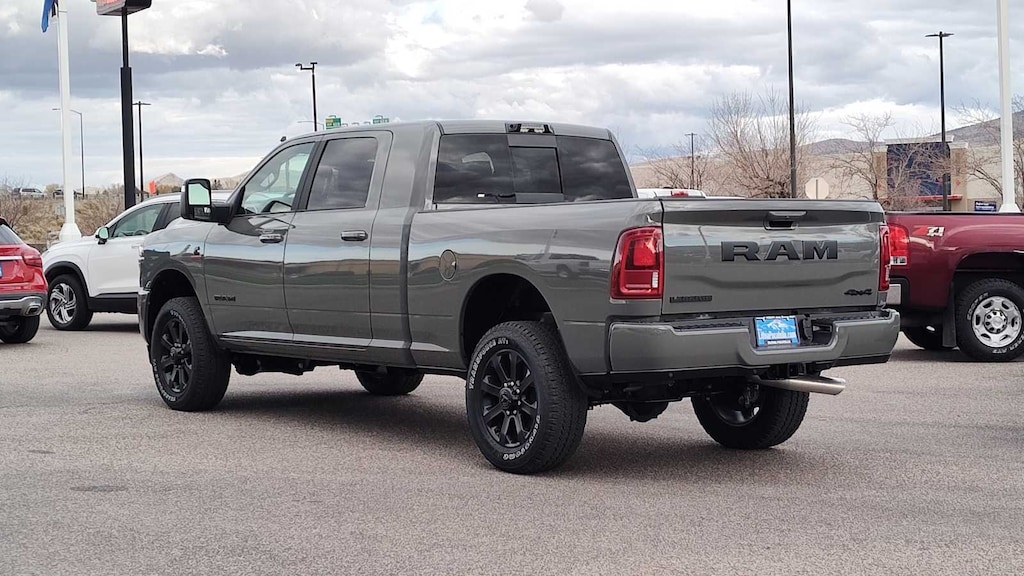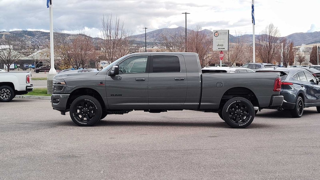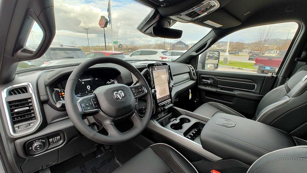 NIGHT EDITION Tires: LT285/60R20E OWL On/Off Road, Black Exterior Truck Badging, Wheels: 20 x 8 Black Painted Aluminum, Gloss Black Grille Billets/Accents, Body Color Grille Surround, Sport Performance Hood, LARAMIE LEVEL 1 PLUS EQUIPMENT GROUP Center Stop Lamp w/Cargo View Camera, Rain Sensitive Windshield Wipers, Power Adjustable Pedals w/Memory, LED Bed Lighting, Traffic Sign Recognition, Adaptive Steering System, Auto Dim Exterior Mirror, Anti-Spin Differential Rear Axle, Heated Second Row Seats, Drowsy Driver Detection, MOPAR Deployable Bed Step, Foam Bottle Insert (Door Trim Panel), Active Lane Management System, Power Heated Fold Telescope Mirrors w/Memory, MOPAR Spray In Bedliner, Remote Tailgate Release, Auto High Beam Headlamp Control, Exterior Mirrors w/Memory, Auto Dim Exterior Passenger Mirror, Auto Adjust In Reverse Exterior Mirrors, TRANSMISSION: 8-SPEED TORQUEFLITE HD AUTOMATIC (STD), ENGINE: 6.7L I6 CUMMINS HO TURBO DIESEL (STD), BLACK, LEATHER TRIMMED BUCKET SEATS Bucket Seats, Dual Wireless Charging Pad, Ventilated Front Seats, Radio/Driver Seat/Mirrors/Pedals Memory, Full Length Upgraded Floor Console. Ram Laramie with Ceramic Gray Clearcoat exterior and Black interior features a Straight 6 Cylinder Engine with 430 HP at 2800 RPM*. Approx. Original Base Sticker Price: $87,500*.