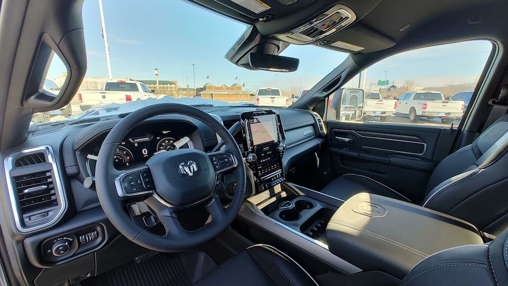 ENGINE: 6.7L I6 CUMMINS HO TURBO DIESEL Selective Catalytic Reduction (Urea), Dual 730 Amp Maintenance Free Batteries, Cummins Turbo Diesel Badge, Heavy Duty Engine Cooling, Diesel Exhaust Brake, Supplemental Heater, 3.42 Axle Ratio, Front Bumper Sight Shields, Capless Fuel Fill w/o Discriminator, GVWR: 11,040 lbs, NIGHT EDITION Tires: LT285/60R20E OWL On/Off Road, Black Exterior Truck Badging, Wheels: 20 x 8.0 Black Painted Aluminum, Gloss Black Grille Billets/Accents, Body Color Grille-Surround, Sport Performance Hood, Black Exterior Mirrors, LARAMIE LEVEL 1 PLUS EQUIPMENT GROUP CTR Stop Lamp w/Cargo View Camera, Rain Sensitive Windshield Wipers, Power Adjustable Pedals w/Memory, LED Bed Lighting, Traffic Sign Recognition, Adaptive Steering System, Auto Dim Exterior Mirror, Anti-Spin Differential Rear Axle, Drowsy Driver Detection, MOPAR Deployable Bed Step, Foam Bottle Insert (Door Trim Panel), Active Lane Management System, Power Heated Fold Telescopic Mirrors w/Memory, MOPAR Spray In Bedliner, Remote Tailgate Release, Auto High Beam Headlamp Control, Exterior Mirrors w/Memory, 2nd Row In Floor Storage Bins, Auto Dim Exterior Passenger Mirror, Auto Adjust In Reverse Exterior Mirrors, MOPAR FRONT & REAR RUBBER FLOOR MATS, TRANSMISSION: 8-SPEED TORQUEFLITE HD AUTOMATIC, BLACK, LEATHER TRIMMED BUCKET SEATS Bucket Seats, Dual Wireless Charging Pad, Ventilated Front Seats, Radio/Driver Seat/Mirrors/Pedals Memory, Full Length Upgraded Floor Console. Ram Laramie with Ceramic Gray Clearcoat exterior and Black interior features a Straight 6 Cylinder Engine with 430 HP at 2800 RPM*. Approx. Original Base Sticker Price: $86,500*.