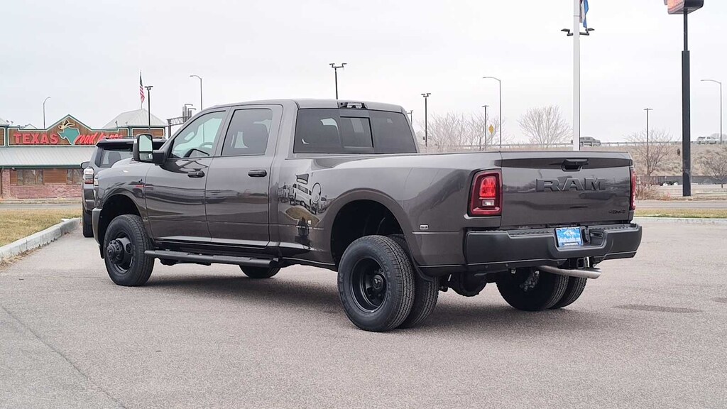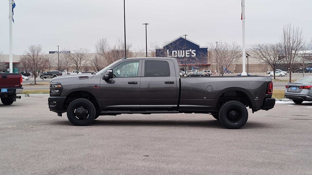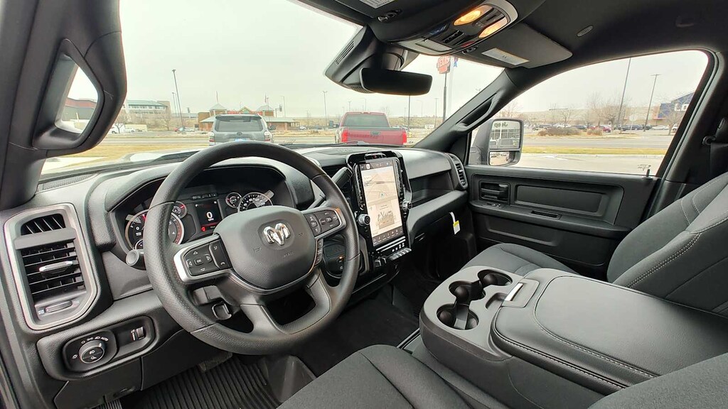 ENGINE: 6.7L I6 CUMMINS HO TURBO DIESEL Selective Catalytic Reduction (Urea), Dual 730 Amp Maintenance Free Batteries, Cummins Turbo Diesel Badge, Heavy Duty Engine Cooling, Current Generation Engine Controller, Diesel Exhaust Brake, Supplemental Heater, 3.42 Axle Ratio, Front Bumper Sight Shields, Capless Fuel Fill w/o Discriminator, TRADESMAN LEVEL 1 EQUIPMENT GROUP Convenience Group, Rear View Auto Dim Mirror, For Details Visit DriveUconnect.com, For More Info, Call 800-643-2112, Rear Power Sliding Window, Emergency Vehicle Alert System (EVAS), 12 Touchscreen Display, Tinted Acoustic Windshield Glass, GPS Navigation, Exterior Mirrors w/Heating Element, MOPAR Black Tubular Side Steps, SiriusXM w/360L, Connected Travel & Traffic Services, Mirror Running Lights, Exterior 115V AC Outlet, Alexa Built-In, Carpet Floor Covering, Power-Adjustable Convex Aux Mirrors, Off-Road Information Pages, Trailer Tow Pages, 400W Inverter, Disassociated Touchscreen Display, HD Radio, Power Heat Fold Telescopic Mirrors, Radio: Uconnect 5 Nav w/12.0 Display, Exterior Mirrors w/Supplemental Signals, Exterior Mirrors Courtesy Lamps, Air, DUAL REAR WHEELS Clearance Lamps, Tires: LT235/80R17E BSW All Season, 17 Steel Spare Wheel, Box & Rear Fender Clearance Lamps, 6000# Front Axle w/Hub Ext, Nexen Brand Tires, GVWR: 14,000 lb, Rear Wheelhouse Liners, BED UTILITY GROUP MOPAR Spray In Bedliner, LED Bed Lighting, MOPAR Deployable Bed Step, TRANSMISSION: 8-SPEED TORQUEFLITE HD AUTOMATIC, BLACK, CLOTH 40/20/40 BENCH SEAT. Ram Tradesman with Granite Crystal Metallic Clearcoat exterior and Black interior features a Straight 6 Cylinder Engine with 430 HP at 2800 RPM*. Approx. Original Base Sticker Price: $77,500*.