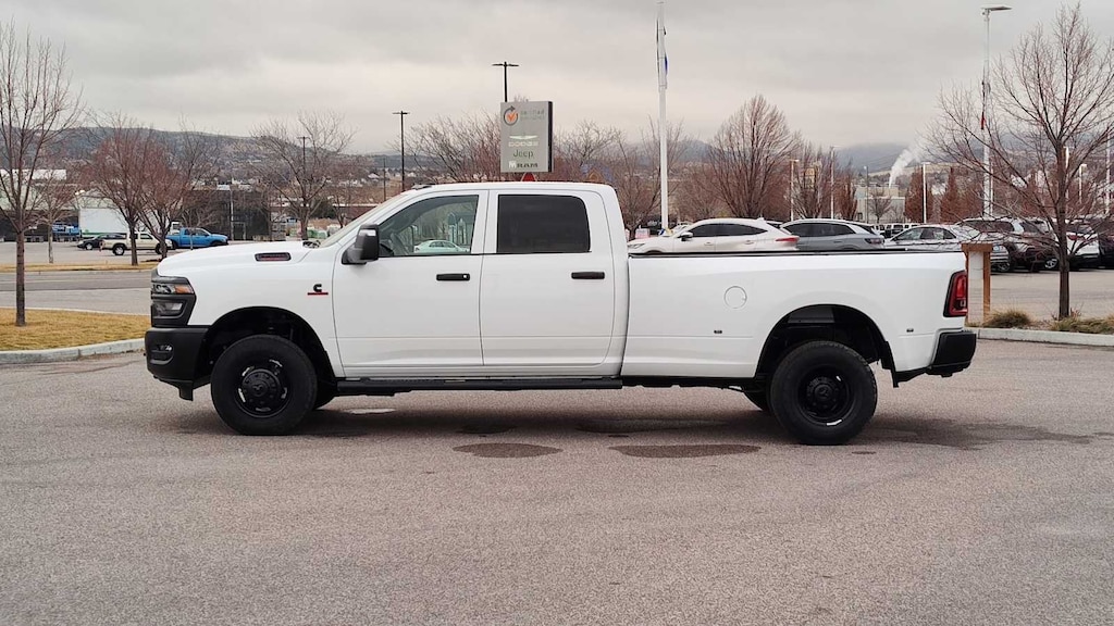 ENGINE: 6.7L I6 CUMMINS HO TURBO DIESEL Selective Catalytic Reduction (Urea), Dual 730 Amp Maintenance Free Batteries, Cummins Turbo Diesel Badge, Heavy Duty Engine Cooling, Current Generation Engine Controller, Diesel Exhaust Brake, Supplemental Heater, 3.42 Axle Ratio, Front Bumper Sight Shields, Capless Fuel Fill w/o Discriminator, TRADESMAN LEVEL 1 EQUIPMENT GROUP Convenience Group, Rear View Auto Dim Mirror, For Details Visit DriveUconnect.com, For More Info, Call 800-643-2112, Rear Power Sliding Window, Emergency Vehicle Alert System (EVAS), 12 Touchscreen Display, Tinted Acoustic Windshield Glass, GPS Navigation, Exterior Mirrors w/Heating Element, MOPAR Black Tubular Side Steps, SiriusXM w/360L, Connected Travel & Traffic Services, Mirror Running Lights, Exterior 115V AC Outlet, Alexa Built-In, Carpet Floor Covering, Power-Adjustable Convex Aux Mirrors, Off-Road Information Pages, Trailer Tow Pages, 400W Inverter, Disassociated Touchscreen Display, HD Radio, Power Heat Fold Telescopic Mirrors, Radio: Uconnect 5 Nav w/12.0 Display, Exterior Mirrors w/Supplemental Signals, Exterior Mirrors Courtesy Lamps, Air, DUAL REAR WHEELS Clearance Lamps, Tires: LT235/80R17E BSW All Season, 17 Steel Spare Wheel, Box & Rear Fender Clearance Lamps, 6000# Front Axle w/Hub Ext, Nexen Brand Tires, GVWR: 14,000 lb, Rear Wheelhouse Liners, BED UTILITY GROUP MOPAR Spray In Bedliner, LED Bed Lighting, MOPAR Deployable Bed Step, TRANSMISSION: 8-SPEED TORQUEFLITE HD AUTOMATIC, BLACK, CLOTH 40/20/40 BENCH SEAT. Ram Tradesman with Bright White Clearcoat exterior and Black interior features a Straight 6 Cylinder Engine with 430 HP at 2800 RPM*. Approx. Original Base Sticker Price: $77,200*.