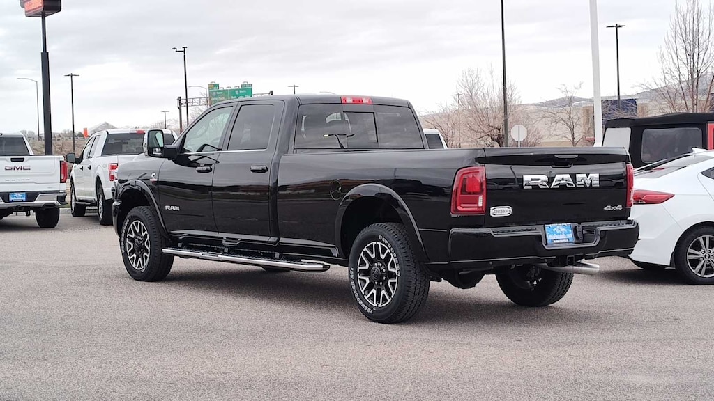 ENGINE: 6.7L I6 CUMMINS HO TURBO DIESEL Selective Catalytic Reduction (Urea), Dual 730 Amp Maintenance Free Batteries, Cummins Turbo Diesel Badge, Heavy Duty Engine Cooling, Current Generation Engine Controller, Diesel Exhaust Brake, Supplemental Heater, 3.42 Axle Ratio, Front Bumper Sight Shields, Capless Fuel Fill w/o Discriminator, BED UTILITY GROUP MOPAR Spray In Bedliner, LED Bed Lighting, QUICK ORDER PACKAGE 24K LONGHORN Engine: 6.7L I6 Cummins HO Turbo Diesel, Transmission: 8-Speed TorqueFlite HD Automatic, Luxury Front & Rear Floor Mats, Warm Chrome Key Fob, Longhorn Instrument Cluster Theme 3, Premium Door Trim Panel, I/P Aluminum Litho Bezels w/Real Wood #1, Longhorn Badge, TRANSMISSION: 8-SPEED TORQUEFLITE HD AUTOMATIC. Ram Longhorn with Diamond Black Crystal Pearlcoat exterior and Bison Brown interior features a Straight 6 Cylinder Engine with 430 HP at 2800 RPM*. Approx. Original Base Sticker Price: $97,600*.