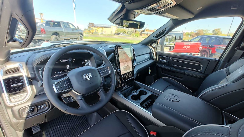 ENGINE: 6.7L I6 CUMMINS HO TURBO DIESEL Selective Catalytic Reduction (Urea), Dual 730 Amp Maintenance Free Batteries, Cummins Turbo Diesel Badge, Heavy Duty Engine Cooling, Current Generation Engine Controller, Diesel Exhaust Brake, Supplemental Heater, 3.42 Axle Ratio, Front Bumper Sight Shields, Capless Fuel Fill w/o Discriminator, LARAMIE LEVEL 2 EQUIPMENT GROUP Rain Sensitive Windshield Wipers, Power Adjustable Pedals w/Memory, For Details Visit DriveUconnect.com, For More Info, Call 800-643-2112, Auto Dimming Exterior Mirrors, Foam Bottle Insert (Door Trim Panel), 14.4 Touchscreen Display, Power Heat Fold Memory Telescopic Mirrors, Radio: Uconnect 5 Nav w/14.4 Display, Remote Tailgate Release, 17 Speaker harman/kardon® Premium Sound, Auto High Beam Headlamp Control, Exterior Mirrors w/Memory, 2nd Row In Floor Storage Bins, Auto Dimming Exterior Passenger Mirror, Auto Adjust In Reverse Exterior Mirrors, BED UTILITY GROUP MOPAR Spray In Bedliner, LED Bed Lighting, MOPAR Deployable Bed Step, MOPAR FRONT & REAR RUBBER FLOOR MATS, TRANSMISSION: 8-SPEED TORQUEFLITE HD AUTOMATIC, BLACK, LEATHER TRIMMED BUCKET SEATS Bucket Seats, Dual Wireless Charging Pad, Full Length Upgraded Floor Console. Ram Laramie with Forged Blue Metallic exterior and Black interior features a Straight 6 Cylinder Engine with 430 HP at 2800 RPM*. Approx. Original Base Sticker Price: $86,800*.